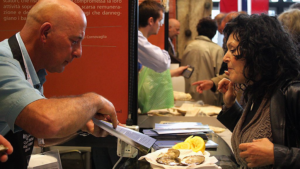 Sheila Dillon follows two Cornish oyster fisherman, Rob Searle and Tim Vinnicombe, as they travel to the 'Slow Fish' gathering in Genoa - the world's largest gathering of fishermen and women from around the world, organised by the Slow Food movement. Rob and Tim are part of a team attempting to save the tradition of gathering native oysters from the Fal Estuary. The oysters are fished in 200-year-old sailing boats as no mechanical power is permitted on the fishery. By taking their catch to Genoa, they hope to raise the profile of the native oyster and create a market that will help ensure the survival of a traditional and sustainable form of fishing.