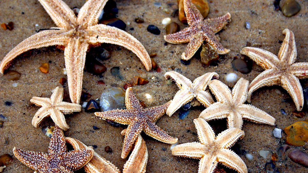 Marine biologist Peter Heyward leads Lionel Kelleway through the rock pools at low tide on the Gower Peninsular in search of starfish. The common starfish is among the most iconic of sea shore animals, but they also meet rather less visible members of the family, including the extraordinary sea potato.