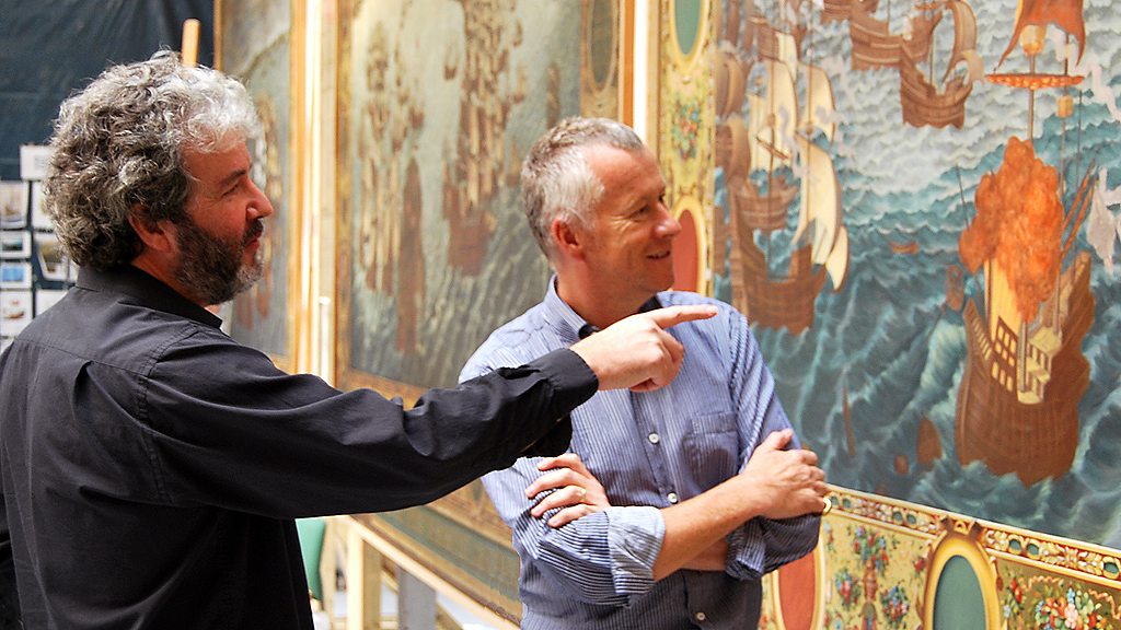 16 October is the 175th anniversary of the Houses of Parliament burning down - and with it, the complete destruction of a set of 17th-century tapestries depicting the defeat of the Armada. However, an engraving of the works survived. John Wilson visits curator Malcolm Hay at the Palace of Westminster and travels to Wrest Park, the country house in Bedfordshire where, for the past two years, artist Anthony Oakshett has been leading a team painstakingly recreating six tapestries - as paintings - prior to their being reinstalled in the House Of Lords in 2010. As co-founder of Joy Division, and later New Order, musician Peter Hook found global success, with New Order's single Blue Monday becoming the best selling 12-inch single of all time. But the profits from these record sales were largely poured into the running of a nightclub in his home-town of Manchester. The Hacienda changed the face of Manchester's music scene forever, but spiralling debts forced it to close in 1997. Peter Hook reflects on the Hacienda's legacy, its immortalisation on film, and why Bernard Manning was the first act to perform there. American artist John Baldessari, who pioneered conceptual art in the 1960s, talks about how he was inspired by a group of teenage delinquents, what place words have in his art and why he cremated many of his early works. Trevor Griffiths's play Comedians first appeared in 1975, and was soon being described as, 'the best play of the 1970s'. A new production has just opened, starring Keith Allen, Reece Shearsmith, Mark Benton and David Dawson; comic Natalie Haynes and John Wilson assess its continuing relevance.