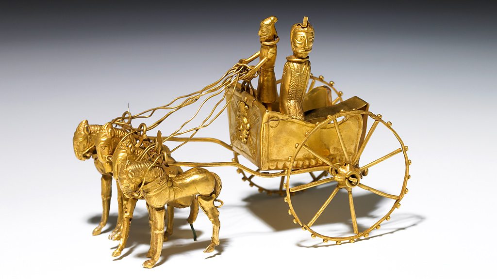 Neil MacGregor's world history told through objects at the British Museum arrives in Persia 2500 years ago. Throughout this week, Neil is looking at powerful leaders across the ancient world. Today he focuses on Cyrus, the first Persian emperor who created the largest empire the world had ever known. It stretched from Turkey to Pakistan and required a hugely sophisticated network of communications and control. At the heart of today's programme is a gold chariot pulled by four gold horses. This hand-sized model helps explain the rule of Cyrus, the "king of kings", and his ambitions for his vast territory - with contributions from the historian Tom Holland and Michael Axworthy of the University of Exeter. How does this glorious pre-Islamic past sit with the people of Iran today?