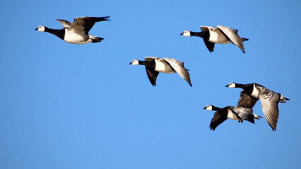 The island of Islay is the most southerly island of the Southern Hebrides and as such has an important role to play in Scottish birdlife. Also known as the Queen of the Hebrides this small island is, in winter, host to thousands of winter migrant birds as they escape the harsh Arctic weather. Some birds use the island as a stop over point to rest and feed before heading away on migration, other species, such as barnacle geese stay the entire winter, leaving in the spring. This weeks Living World, finds Michael Scott leaving the Scottish mainland to travel the two and a half hour journey by ferry to meet an old friend of his Malcolm Ogilvie. Malcolm has been studying the geese of the island for nearly 50 years and has been resident here for half that time. But Islay has so much more birdlife to offer than geese; indeed in the autumn and spring keen birdwatchers come to the island to attempt a remarkable feat, to see over 100 different species of birds on the island in a single day. Michael and Malcolm visit over the winter and therefore aim for lower numbers of birds to be seen during this visit, by concentrating on one small but beautiful area of Islay, Loch Gruinart on the northern coast of the island. Beginning at the head of Gruinart, huge numbers of barnacle geese can be seen feeding on the flooded fields below, geese that move and erupt into restless flight in ever increasing numbers, a spectacle that is both beautiful and awesome to behold. At the head of the Loch is Ardnave Point where different species of birds can be seen both on a small isolated lochan and at the spectacular mouth of the Loch, framed by the islands of Jura and Mull beyond. However one of the real jewel species of these islands is a rare member of the crow family, the chough. Islay holds a sixth of the UK's chough population and Michael is keen to see these birds on this visit as he scans the horizon from a windswept dune system overlooking the sea. Is that their call being carried along by the buffeting wind on the ridge? Yes, here they come, these acrobatic specialists, right on cue.