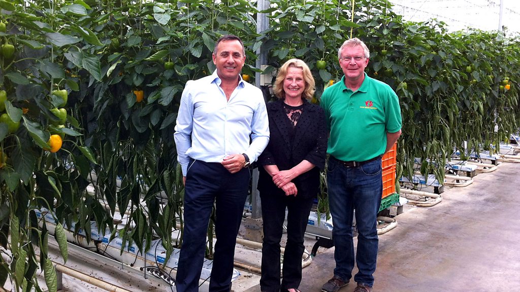 Over the last century the Lea Valley near Essex has become a hub for growing under glass and producing home grown salad vegetables. We still import the vast majority but there is increasing demand for British produce but the green belt and competition for land has meant expansion has been difficult. After a three year fight Valley Grown Nurseries has just won planning permission to create a new taller glasshouse over 21 acres. Anna Hill visits their current operation near Harlow in Essex to see how our peppers are carefully grown to achieve the required uniform shape and size. Grower Gary Turner tells her about our taste for new varieties and how experiments using LED lights could change how much is produced. The family company is run by Vince Russo, along with his brother, having been founded by their parents and they now source and pack millions of tonnes of produce from 17 other growers nearby. He explains why many Sicilian families came to the area and recognised the future in growing salad vegetables under glass.