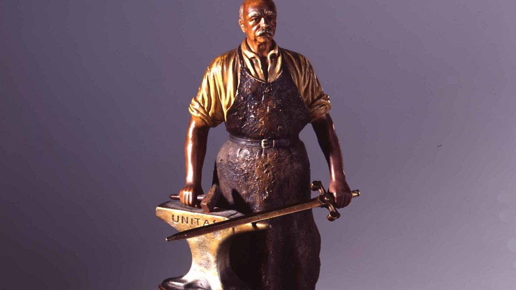 Neil MacGregor charts the career of Otto von Bismarck (1815-98), known as the Iron Chancellor: he argued that the great questions of the day should be decided by 'iron and blood'. Bismarck was disliked and feared by foreigners, and reviled by liberals at home for his authoritarianism, but among many sections of the German population, he was a hero. At his death, monuments were erected across the whole country by public subscription, but Bismarck could also be brought into your own home. Small statues of Bismarck came in many guises, but few are more striking than the little bronze and plaster figure belonging to the German Historical Museum in Berlin, showing Bismarck the Blacksmith. Bald-headed, sleeves rolled up, wearing a leather apron and wielding his hammer, the middle-aged Bismarck is at his forge, the trusty village blacksmith. Producer Paul Kobrak.