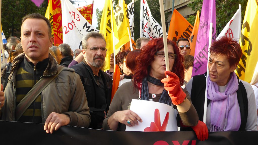 The cleaners whose protest has captured the imagination of those opposed to the harsh austerity programme in Greece. Mostly middle-aged or nearing retirement, they have refused to go quietly. The women have kept up a day and night vigil outside the Finance Ministry in Athens, taken the government to court and resisted attempts by the riot police to remove them by force. They've challenged representatives from the International Monetary Fund and raised their red rubber gloves in a clenched fist at the European Parliament. Some say they represent the plight of many women and the poorly paid, others that they are being manipulated by the left. Maria Margaronis hears the women's stories and asks what makes them so determined. Producer: Mark Savage.