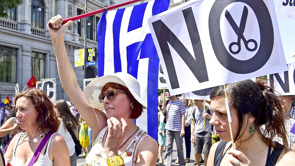 Who are "the people" - and who's keeping power from them? Eliane Glaser explores how across Europe and beyond, populist movements are claiming they can to put back politicians in touch with voters and reinvigorate democracy from the grassroots. From UKIP's millions of voters to the passionately engaged Scottish referendum, from the rise of nationalist parties in northern Europe to burgeoning left-wing movements like Syriza and Podemos further south, traditional politicians are feeling the public's wrath. But how much of the crowd-pleasing rhetoric can be taken at face value - and do politicians really now think of themselves as ordinary people? Contributors: Professor PAUL TAGGART, University of Sussex Professor VERNON BOGDANOR, King's College London DOUGLAS CARSWELL, UKIP MP for Clacton SIRIO CANOS, Podemos PETER OBORNE, journalist and author Professor CAS MUDDE, University of Georgia Producer: Polly Hope. (Photo credit: AFP/Getty Images. Picture shows a woman holding a placard at a demonstration on 5th July 2015)