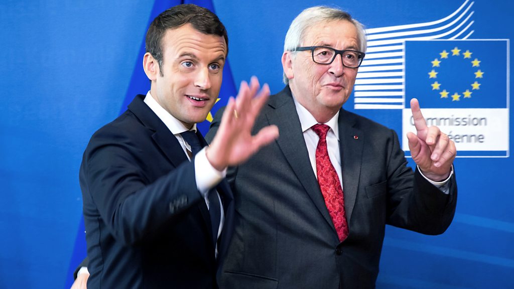 Edward Stourton asks how the European Union might change after Britain leaves. "The wind is back in Europe's sails", according to European Commission President Jean-Claude Juncker. In September, in his annual address to the European Parliament, he set out a bold dream for the future. Soon afterwards it was echoed by another, this time from French President Emmanuel Macron who declared that "the only path that assures our future is the rebuilding of a Europe that is sovereign, united and democratic". Amongst the proposals that the two leaders put forward were a European budget run by a European finance minister, an enlargement of the Schengen passport-free travel zone, and much closer collaboration on tax, defence, and a host of other issues. But at present, the European project faces huge challenges. Britain is about to leave the EU, whilst Catalonia's bid for independence is causing turmoil in Spain. In the face of such developments, how realistic are the grand visions that Europe's leaders have for the future of the continent? Producer: Neil Koenig.