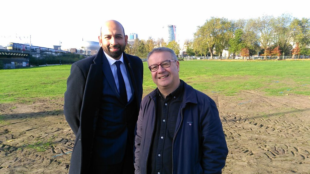 Adrian Goldberg travels around Birmingham meeting with fellow Brummies, all of whom have a special vision for the future of Birmingham's landscape. He begins on a huge piece of blank wasteland in the very heart of the city centre which is waiting to become the home of the Birmingham terminal for HS2. He's joined by Waheed Nazir from Birmingham City Council to consider how the anticipation of HS2 is already changing Birmingham's skyline as well the city's sense of its own future. Adrian joins the Birmingham Trees for Life team in a park on the far Eastern rim of the city. The team have coordinated the planting of over 70,000 trees in Birmingham over the past 10 years with many groups of children and volunteers. His next stop is to Britain's first retrofit zero carbon house, just 2 miles out of the city centre in Balsall Heath. Architect John Christophers has a special interest in Sustainable Architecture, and his recently built family home is an inspiring vision of how existing housing stock could be transformed to become carbon neutral homes. When an architectural critic from The Times visited this house he said: "I have seen the future, and it's in Birmingham". Adrian's next visit is to the Apple Day at the Queen Elizabeth Hospital. This is the brain child of HR manager Antony Cobley who has led an initiative to plant orchards and gardens around the hospital grounds for patients and relatives to the hospital. Sutton Park is one of Europe's largest urban parks and is 9 miles to the north of the city centre. Here Adrian joins a group of Rangers and volunteers on a project to transform a dense wood of holly which hasn't been coppiced for over 200 years, to an open woodland of ancient oaks and newly planted rowan trees. Presented by Adrian Goldberg Produced by Rosie Boulton.