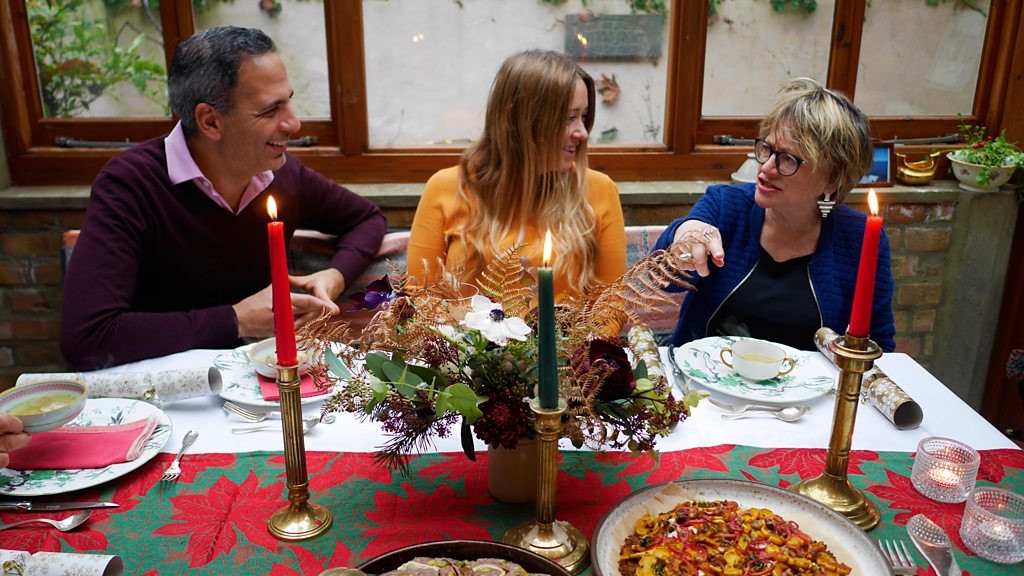 Sheila Dillon invites some special guests, friends old and new, to come and share a festive meal. Before they start to arrive, Nigel Slater drops by to help Sheila prepare. Each visitor will bring a dish, or a drink, that for them captures something unique of the flavours and spirit of the season. Knocking on Sheila's door are: Giorgio Locatelli, Angela Hartnett, Anna Jones, Pete Brown, Neil Borthwick and Yotam Ottolenghi. Presenter: Sheila Dillon Producer: Rich Ward.