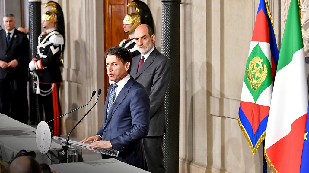 Does the new Italian government really pose a danger for the Eurozone and the European Union? There has been much to-ing and fro-ing in Rome this week as the two parties which finished up ahead in Italy's election in March have tried to persuade the president to approve their coalition government. The parties are unlikely populist allies: the anti- establishment Five Star Movement and The League, which started life as a secessionist movement in the north of Italy. Both parties reject economic austerity. They want to lower taxes and raise government debt further. This is causing alarm bells to ring in EU capitals. Were Italy to prove unable or unwilling to cut its budget deficit, the potential for a new crisis in the Eurozone looms. Italy, say some commentators, could drag other countries, such as Spain and Greece, down with it. It is unprecedented in a country that was one of the founder members of the EEC, the EU's forerunner, to have Eurosceptic leaders at the helm. CONTRIBUTORS Professor John Foot, a historian specialising in Italy at the University of Bristol Jacopo Iacoboni, author of L'Esperimento, a book about the Five Star Movement Cristina Marconi, a journalist on the newspaper Il Messaggero Ferdinando Giugliano, a columnist and leader writer on European economics for Bloomberg Opinion Judy Dempsey, a former Brussels correspondent and now a senior fellow at the Carnegie Europe think tank. Image: Italian lawyer Giuseppe Conte addresses journalists after a meeting with Italy's President Sergio Mattarella on May 23, 2018 Credit: VINCENZO PINTO/AFP/Getty Images.