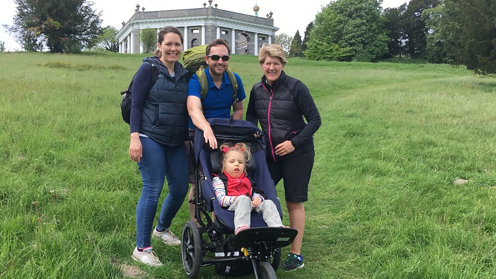 Clare Balding walks to the extraordinary Dashwood Mausoleum, near High Wycombe, with Julia and Lee Clements and their daughter, Cerys. Cerys is nearly six years old and has cerebral palsy, so joins the walk in her off-road buggy. Together Julia and Lee discuss how they have adapted to life with a profoundly disabled child; Julia says she has become a 'fighter', especially for the right to give her daughter blended 'real' food, through the tube in her stomach, and not just formula milk which is the accepted norm. Lee says he once defined himself by his achievements at work, or in running marathons, or going for very long walks whereas, now, he values even the shortest of outings with Cerys - navigating kissing-gates, or pushing her weighty buggy uphill is a joy and a challenge in itself. Producer: Karen Gregor.