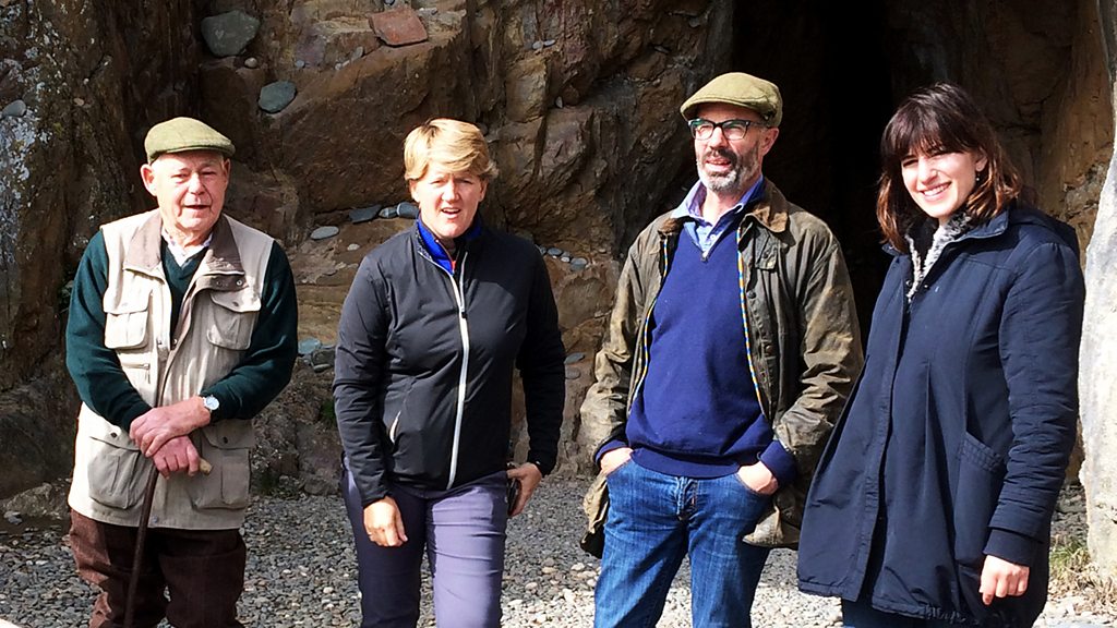 Clare Balding walks the final part of the Whithorn Way with a local group of walking enthusiasts. It's an an an ancient pilgrim route from Glasgow down along the west coast ending at the holy site of St Ninian's Cave on the southern tip of the peninsula looking towards the Isle of Man. Pilgrims have been making the journey for centuries until they were banned from doing so after the Reformation during the 16th century, but the tradition has been revived and with the restoration of the walking route, more people are expected to do the 146 mile route through some of Scotland's most beautiful but often overlooked landscapes. Pictured left to right: Ian Gemmell, a retired local vet from Whithorn, Clare Balding, Finn McCreath local farmer and trustee of the Wigtown Book Festival and Jessica Fox, former NASA storyteller. Producer: Maggie Ayre