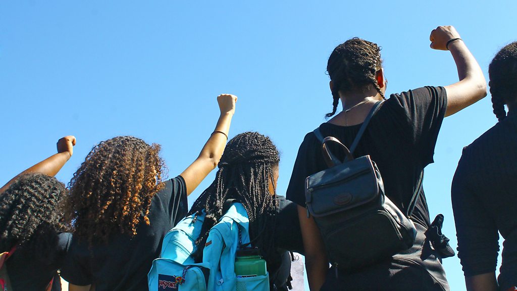 It was during a University Cultural Weekend promoting diversity that the Lambda Chi Alpha photos appeared on social media. Members of various campus clubs immediately demanded the expulsion of those involved. Wearing black shirts and carrying protest slogans, they taped their mouths shut to show just how long they’ve been silenced. Hundreds of students join in the protests, attending open forums and bringing the issue up with lecturers and university officials. Their anger is fuelled by the campus record on diversity: just 166 of its 21,000 students are black. Megan talks to Monique Ejenuko, whose parents are from Nigeria but who has grown up in the Los Angeles area and who was ill prepared for how marginalised she would feel: “It’s a State University with a great reputation, but when I arrived I went to a talk as part of orientation where they briefly brought up race. When they were talking about it I just looked around and I was the only drop of blackness in that auditorium. It was so overwhelming – they were talking about this topic and I was at the centre of it and I just feel so alone.” Just days after the publication of the photos the University President, Professor Jeffrey Armstrong, suspends the fraternity but tells a packed student gathering that he will not support expelling the student in blackface, Kyler Watkins, who is protected by the amendment on free speech: “If a student walks around on campus with their face painted black, they can do that.” This provides a further rallying call for protestors to step-up their actions; adding Armstrong’s resignation to their growing list of demands. Racial tensions increase, as do reports of racist attacks: Professor Neal MacDougall, from the College of Agriculture, Food and Environmental Service, returns to his office to discover that posters have been vandalised and racist leaflets put up: “I think it's really the slashing of the sign that disturbed me; that's fundamentally a violent act," he also criticises the University response, which he says seems more concerned with maintaining status rather than dealing with the issue: "I really think that they're trying to protect the brand, everything seems to be soft-pedalled." Cal Poly spokesman Matt Lazier acknowledged the scale of the problem: “the university is seeing many postings around campus, expressing a wide variety of viewpoints — some of which include hateful and racist comments." During her recordings, Megan encounters a group of 50 African American school children touring the University. They are from a network of charter schools focused on closing the African American achievement gap. Margaret Fortune heads the group and says it is a long slow process involving high expectations, academic rigour and more time: “Our county board of education found that in all 13 of our county school districts there was severe and consistent African American achievement gap - the only group they outperform is those with special needs. Our focus is on getting African American students college ready and this involves working with them from a very early age and over many years.” For his part, Kyler Watkins, the student who dressed in blackface, says that he did not appreciate the context, or how inflammatory his appearance would be. Historically, blackface derives from white actors painting their faces black to depict slaves and freed black people during minstrel shows from the mid nineteenth century onwards. Kyler Watkins adds that growing up white and privileged left him ignorant about the upset he would cause: “my own lack of awareness has placed my life in danger and worse, has hurt other people whom I had no intention of alienating, mocking or offending in any way." Student Monique Ejenuko, tells Megan that the fraternity’s actions have set back her hopes of integration on campus. She struggled through her first year, making few friends and feeling out of place amongst so many white faces: “I have to constantly prove myself in my classes: if I'm too loud then she's a loud black girl, if I'm too quiet then I'm not achieving the standards that they want me to. “ One of the organisers of the protests, Leilani Hemmings Pallay, said she was surprised by how many students had got involved in the protests. She reveals that lots of black students feel scared by what is happening: “I've shut out lot of my class mates because scared they were amongst the people at the party, or putting the n word on the bathroom stalls. “Recently a black freshman was spit on; it's just these things happening and I don't feel safe at all. How can you say you're trying to increase diversity yet you fail to protect students of colour on this campus?” Producer: Sue Mitchell