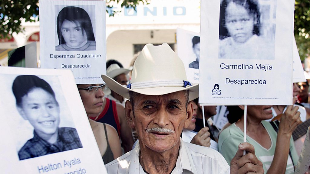 In 1994 investigators in El Salvador located the first of several hundred children who'd disappeared more than a decade earlier during the country's brutal civil war. There had been rumours that the children had been kidnapped by the army. Mike Lanchin has been speaking to Elsy Dubon who was taken from her family as a child, and to the investigator who helped to find her. Photo: Peasants who lost their children during military operations in the El Salvador civil war at a rally in March 2006 (YURI CORTEZ/AFP/Getty Images)
