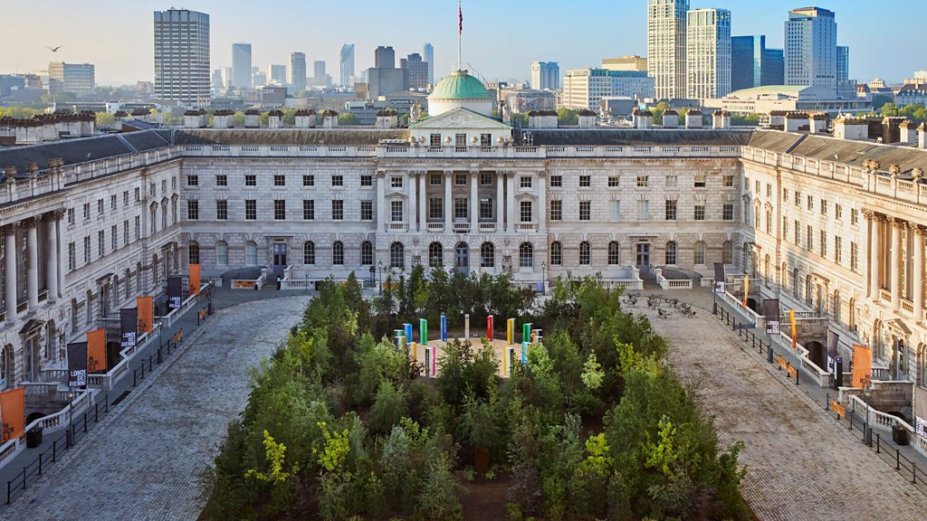 Es Devlin, who designed sets for Hamlet with Benedict Cumberbatch and Stormzy at the Britz, has created something more quietly contemplative as artistic director of the London Design Biennale, filling the courtyard of Somerset House in London with trees. She tells Elle Osili-Wood about how forests in literature are places of transformation and how she created her Forest for Change, with a clearing at its heart where we are invited to consider the UN Global Goals for Sustainable Development. The artist Phoebe Boswell’s new exhibition Here at New Art Exchange in Nottingham features many life-size, detailed, figurative drawings, as well as large-scale video and animations which reflect her exploration of marginalisation, freedom and the idea of home. She discusses her work and how it echoes her own experience as a Kenyan-born British artist. On May 18 the DCMS amended guidance issued on the 17th May prohibiting non professional singers from meeting indoors in groups larger than 6 which effectively prohibited most planned choral activities for the 2.2 million singers in over 40,000 choirs across the country. Front Row hears from Richard Reeves, General Manager of the Royal Choral Society who staged the Messiah at the Royal Albert Hall last Sunday and Paul Parker, lawyer and part-time tenor about the ongoing issues the new guidance has raised. Presenter: Elle Osili-Wood Producer: Julian May Studio Manager: John Boland Main image: The Global Goals Pavilion: Forest for Change at the London Design Biennale Image credit: Ed Reeve