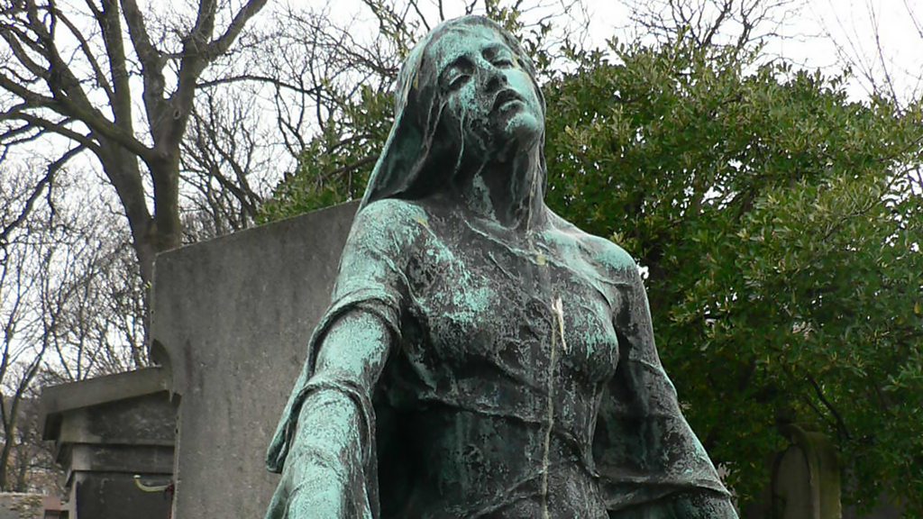 Matthew Sweet discusses grief and the expression of mourning with guests Lindsey Buster, an archaeologist whose work at Death Cafes, set up to help people talk about death, has led her to reinterpret the way people's relationship with 'stuff' shows up in the archaeological record Emily MacGregor, a musicologist who is writing a memoir of the ways her relationship with music changed after the death of her father Christina Faraday, an historian of art who has studied memento mori and vanitas, two popular genres of painting in the early modern period that suggest a different set of attitudes towards death Sally Berkovic, who has written about Jewish rituals and traditions surrounding death and mourning Image: Weeping widow statue in Montmartre Cemetery, Paris