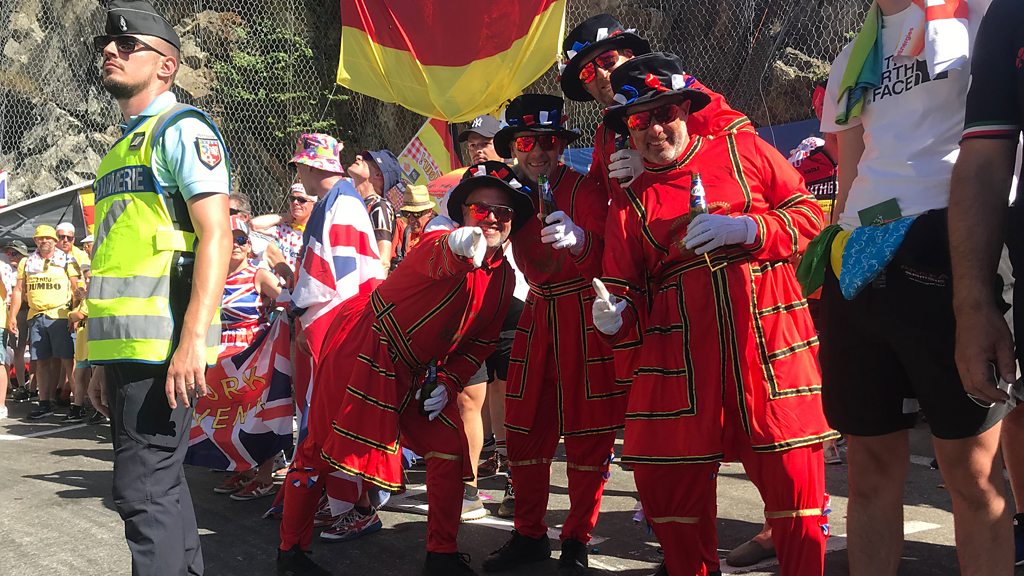 Over a decade ago, two friends from Essex decided to break off from work and drive down to the Alps. Neither knew much about cycling but the plan was to watch the Tour de France dressed in peaked caps and cravats. Probably best not to ask why. By 2014 when the race came to Yorkshire, they'd moved on to full Beefeater outfits - red jackets, black hats, white gloves, matching shades. They love dancing to europop at the side of the road, and in 2019 they were voted the Union Cycliste Internationale (UCI) fans of the year. Miles Warde joins the Beefeaters as they load up their shopping trolleys at the bottom of Alpe d'Huez for one of the toughest and hottest stages of this year's race. They are pushing up to Bend 20 where they'll reclaim a little space from a German called Herbert who has been looking after their beer, then set up their generators and loudspeakers and dance for six hours. Unlike other bends on the Alpe - Dutch Corner, Norwegian Corner, Cymru Corner - Beefeater Bend is completely non-national. Everyone is welcome, and everyone comes because everyone loves europop in the blistering sun. "The nicest programme I've made." Miles Warde