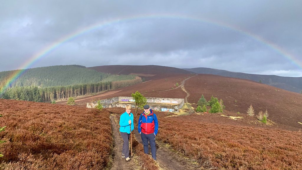 The beautiful Borders of Scotland is the location for Clare’s walk this week. She’s exploring the area around Innerleithen with Stewart Wilson. After a career in finance Stewart made a handbrake turn in his early 40s and became a tour guide and travel blogger. He says most visitors to Scotland bypass the Borders for Edinburgh or the Highlands and Islands but – in doing so – are missing out on gorgeous scenery and fascinating history. So today Stewart wants to share what it is about the Borders, and Innerleithen in particular, that should make people want to stop and explore. He grew up there in a family who, for generations, had worked in the textile industry. It’s a sector that has all but disappeared, apart from a few high-end makers, so the area has to try and develop a new identity. History, mountain biking, and of course hiking are all a draw, including the challenging long distance Southern Upland Way which passes nearby. Stewart begins today’s walk at Innerleithen Parish Church on Leithen Road. From there he then leads Clare over Leithen Water at Cuddy Bridge and, after a couple of stiff climbs through a forestry plantation with trees creaking in the wind, arrives at the disused relic of Kirnie Law reservoir. It's a great view point, which thanks to the rainy, sunny, sleety weather, created a full rainbow over the heathery hills beyond. It's a circular route that takes them back down to Innerleithen, just over five miles in total. Producer: Karen Gregor Presenter: Clare Balding