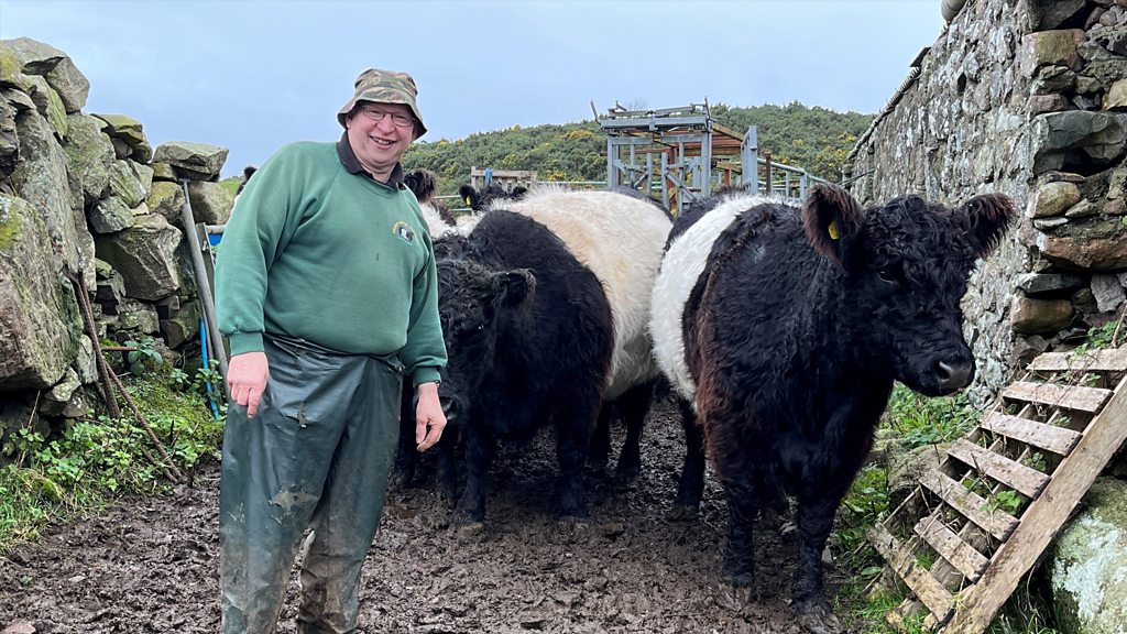 It’s the cow that looks like a humbug: black with a broad white stripe around their middle. Belted Galloways used to be a rare sight but now they’re a firm favourites of both farmers and the British public all over the UK. Caz Graham visits Richard Wilson’s farm and his herd of Belties on the Galloway coast to find out why these distinctive looking native breed cattle are more popular than ever. As Vice President of the Belted Galloway Society and a breeder of many years, he explains why they’re such useful cattle for conservation grazing, how their beef is in high demand and we meet Annie, possibly the only cow in the UK with her own column in a Parish magazine. Produced and presented by Caz Graham.