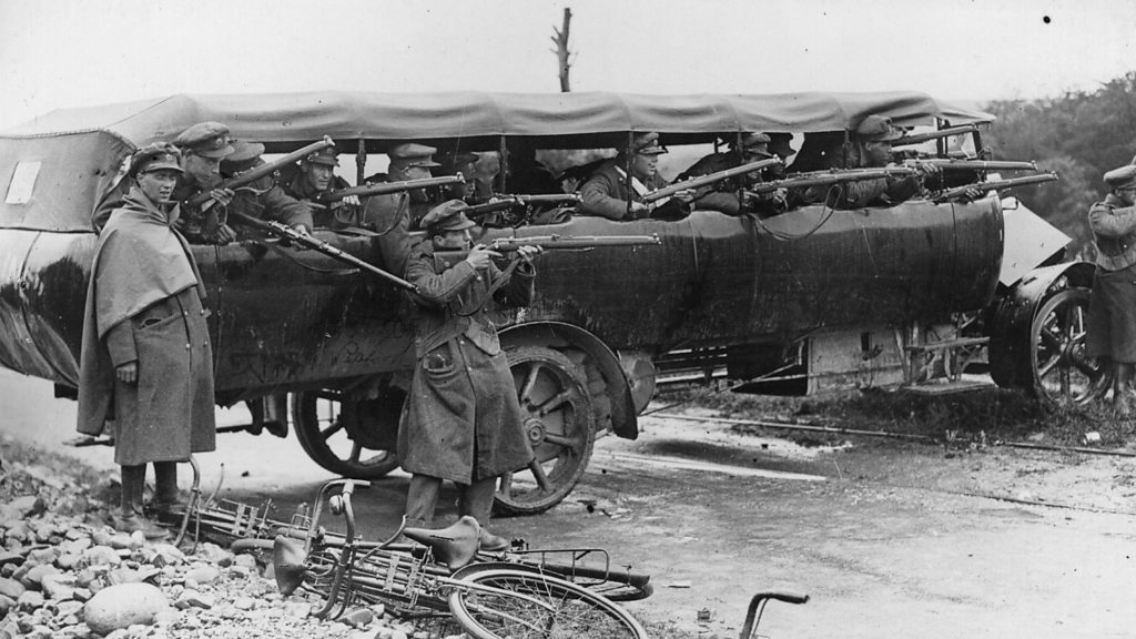 The Irish Republican Army began its fight against British rule in January 1919. Witness hears stories from a former IRA fighter, Dan Keating, and from a child of those times, Packie Manus Byrne. Keating was the last survivor of the Irish War of Independence and Civil War, and died at the age of 105 in October 2007. Packie Manus Byrne was a folk singer and musician from Donegal who died in May 2015. The programme was first broadcast on January 8, 2010. (Photo: Soldiers near Blessington in the First Dublin Brigade area, barricade a road and prepare for attack during the Irish Civil War, July 1922) (Credit: Hulton Archive/Getty Images)