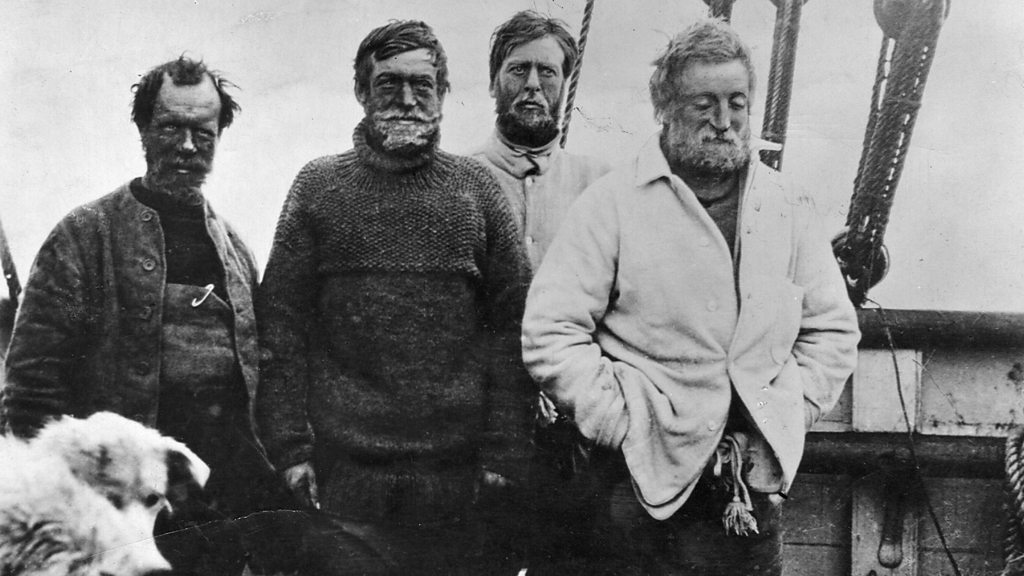 Karen Bowerman retraces the route of Antarctic explorer Frank Wild, Shackleton's second-in-command, as Wild's ashes are taken to South Georgia for burial next to Shackleton. Sir Ernest Shackleton has a heroic place in the annals of Antarctic exploration, famously for his expedition on the aptly-named Endurance in 1914. He intended to cross over the Antarctic landmass. Instead, his ship became stuck in ice which eventually crushed it. Shackleton and his crew made a desperate voyage in three small boats to Elephant Island, where they split up. The men on the island were left under the command of Shackleton's Number two, Frank Wild. Shackleton and a small team sailed 800 miles to South Georgia, from where they mounted a rescue mission for Wild's group. Nearly a century on, reporter Karen Bowerman joins a group of Wild's relatives retracing his extraordinary journey to the southern seas. They are bearing Wild's ashes, which they bury next to Shackleton, on South Georgia. (Image: Frank Wild (far left) with Sir Ernest Shackleton (second left) and crew aboard the Nimrod. Credit: Getty Images)