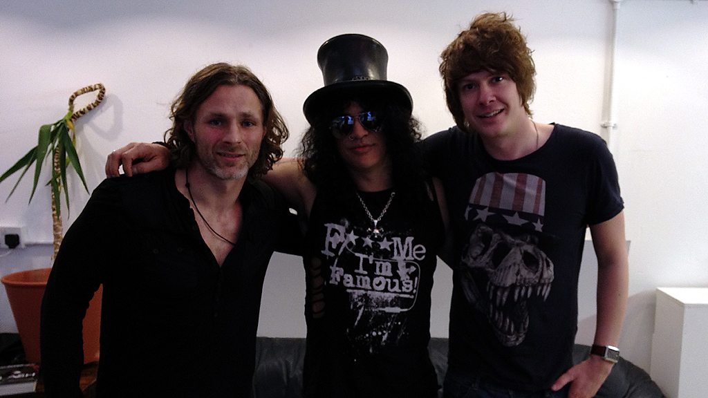 Wycombe Wanderers' Gareth Ainsworth - and singer of the 5 live footballer band - meets hero Slash