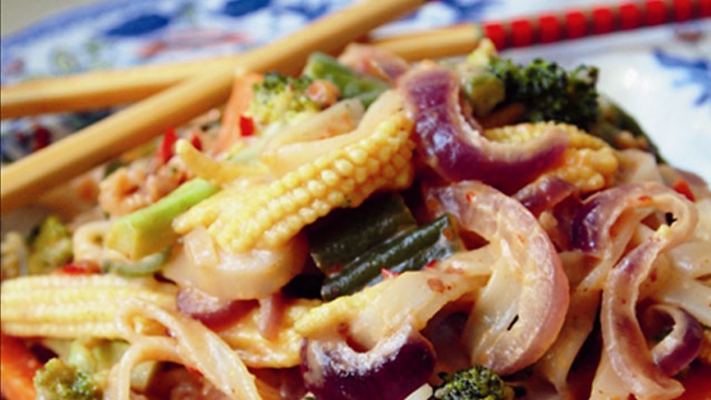 Acclaimed photographer and well-known vegetarian Mary McCartney demonstrates how to cook the perfect vegetarian supper - Yummy Spicy Rice Noodles.
