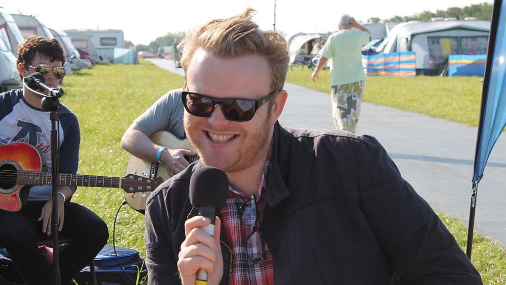 Huw Stephens ar raglen Dafydd a Caryl yn fyw o faes carafanau Eisteddfod Bro Morgannwg.