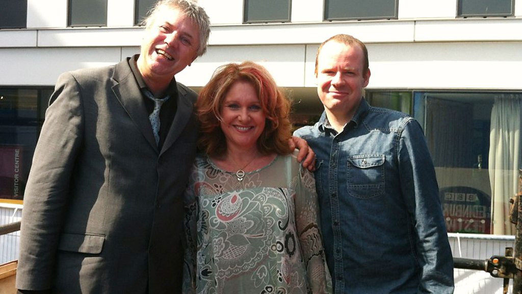Stars Mark Little, Jan Ravens and Neil Delamere join Fred on the sofa.