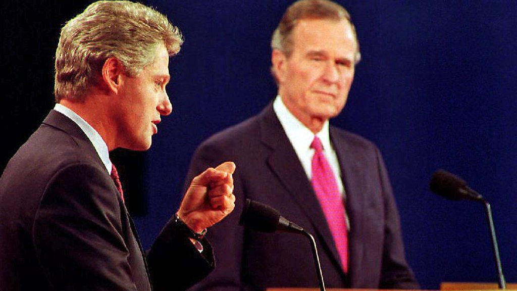 The history of electoral debates from Lincoln to Clinton and the power of public perception in the run up to the 1992 US presidential election.