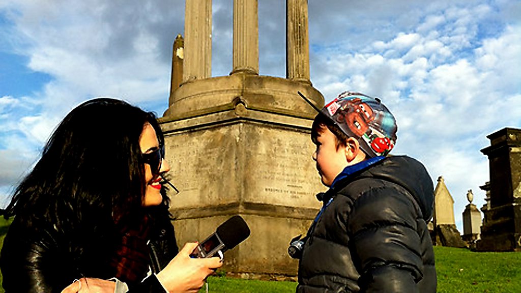 Comedian Julia Sutherland and a halloween visit to Glasgow Necropolis with her son.