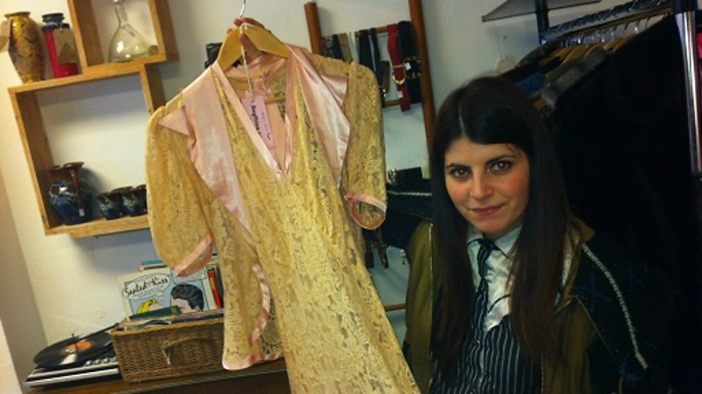 Natasha Gibson from Anything Goes in Southsea, trying not to laugh at Neil's dress sense.