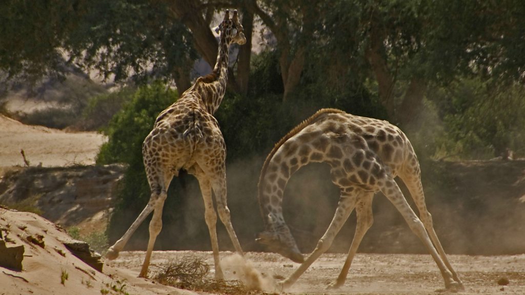 Producer Simon Blakeney and camera operators Alex Lanchester and Justine Evans discuss the unique footage of the fighting giraffes seen in the first episode of BBC One series Africa.