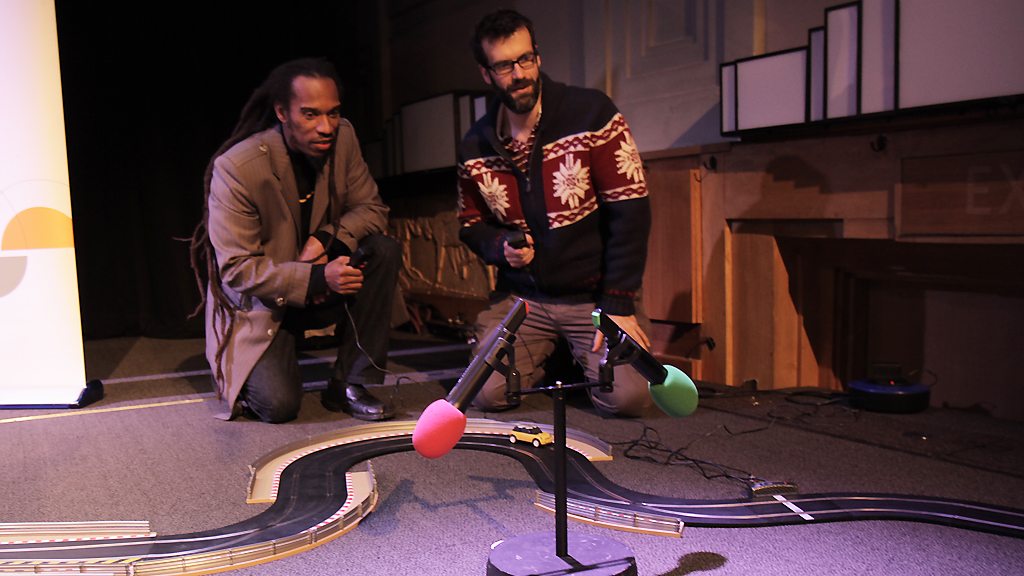 The poet joins host Marcus Brigstocke for a race.