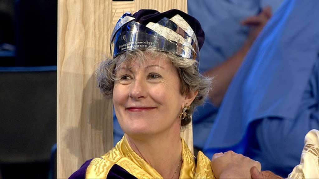Y bardd Gwyneth Lewis yn y stiwdio yn westai arbennig ar raglen Dafydd a Caryl.