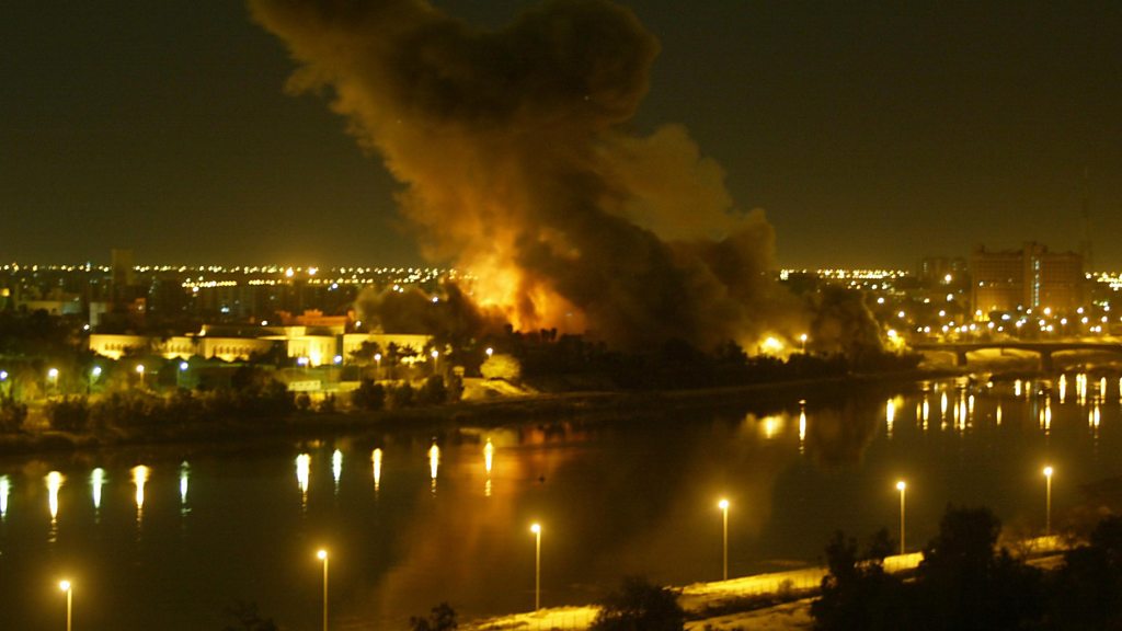 It is a decade since the US and its allies began their invasion of Iraq. For those living in Baghdad it meant three weeks of bombing and fear. Hear what life was like for an ordinary family in the capital. Photo: Baghdad, March 20 2003, AFP/Getty Images