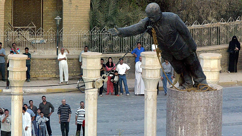 Ten years on, Matthew Bannister hears three different perspectives on the US-led invasion of Iraq. Kadhim al-Jubouri found fame after he was pictured taking a sledgehammer to a statue of Saddam Hussein in Baghdad's Firdous Square. But he says he now regrets his actions, as his hopes of a better future remain unfulfilled. Two young women from Iraqi Kurdistan tell how playing basketball takes their mind off the violence they've seen. And US Army Ranger Blake Hall, who served in Iraq in 2006 and 2007, describes his successful campaign to get the family of "Roy", his interpreter, a safe haven in the States. Roy's mother, Maladah, gives her thoughts on their new life in California. Picture: Iraqis in Baghdad's Firdous Sqaure watch Saddam Hussein's statue fall. Credit: PATRICK BAZ/AFP/Getty Images.