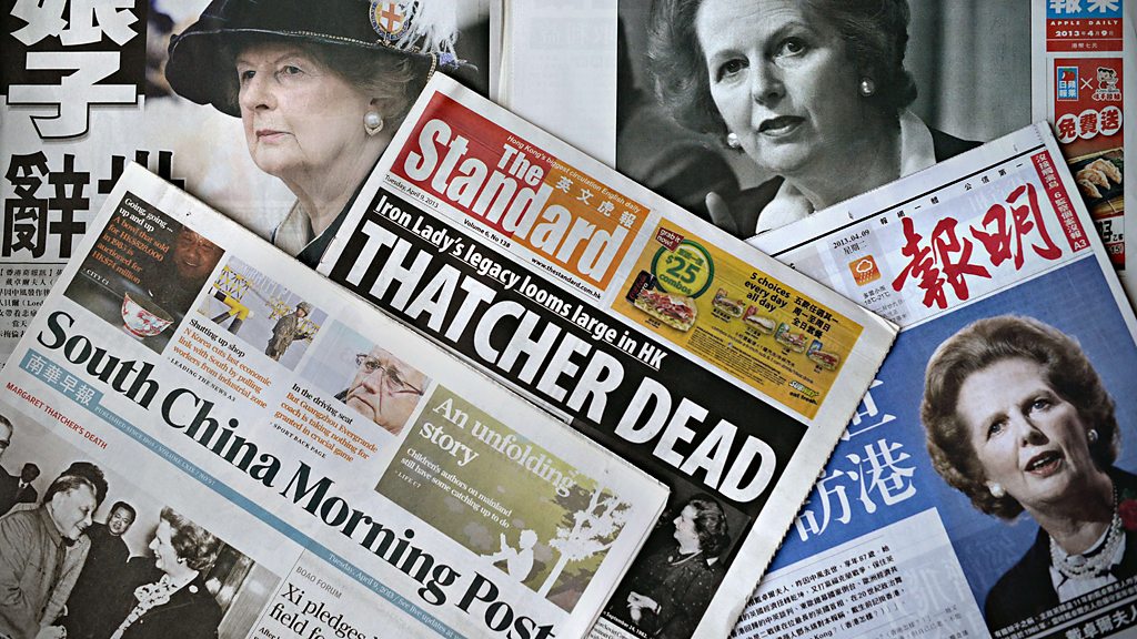 After her death at the age of 87, WHYS asks what personal impact Mrs Thatcher had on people around the world. (Image: Hong Kong newspapers pictured with images of late former British prime minister Margaret Thatcher. Credit: PHILIPPE LOPEZ/AFP/Getty Images)