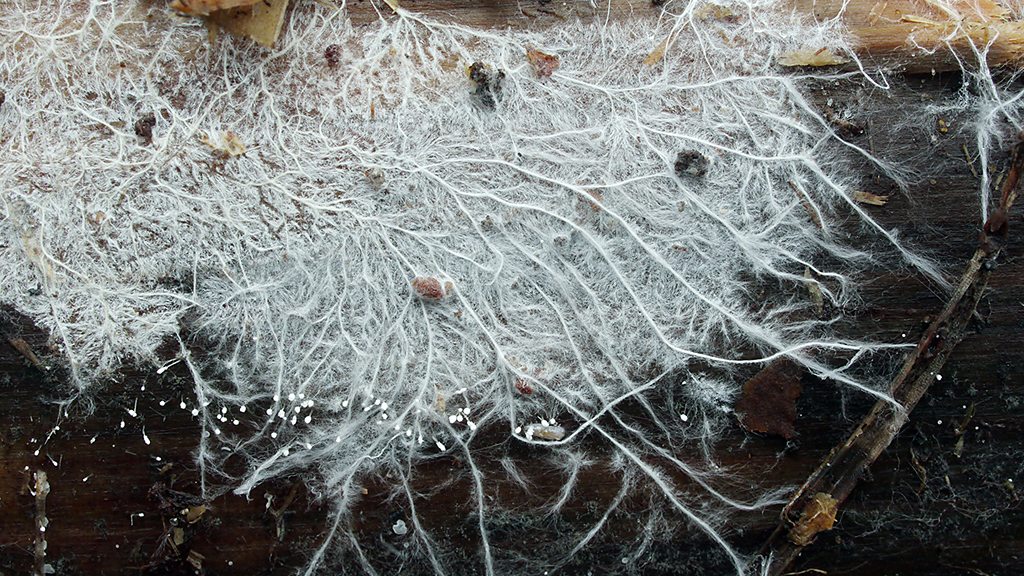 The methods and tactics of fungal combat. Photo: Mycelium with Hyphal Strings by Jens H. Petersen