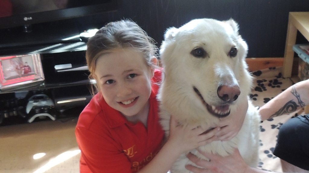 Kayleigh a'bruidhinn mu na peataichean aice, Noonook agus Bob.