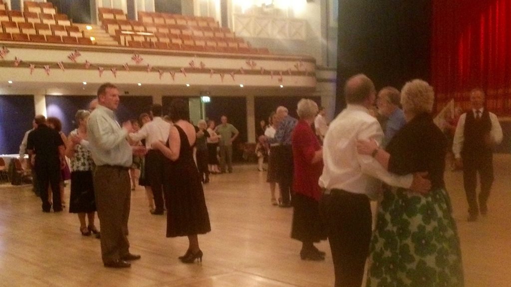 Visitors to De Montfort Hall were celebrating it's one-hundredth anniversary in style this weekend with a very special tea dance. Guests were given a tasty treat of tea and cakes, were given a lesson in ballroom dancing by Pineapple Dance Studio's Derek Hartley, and then got to strut their stuff to a live dance orchestra. BBC Radio Leicester's David Sykes gives us a taste of this toe-tapping tribute to a Leicester landmark: