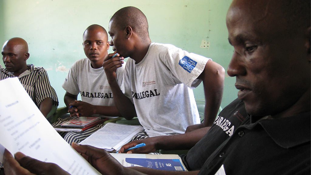 Most people who face criminal charges in Kenya go to court without a lawyer. By the Kenyan judiciary’s own admission, this leads to a great deal of injustice. This programme meets an impressive group of prisoners who are acting as lawyers on behalf of themselves and their fellow inmates. Mostly by discovering flaws in the original cases, they are managing to get large numbers of convictions overturned at appeal. According to one Kenyan lawyer, these prisoner paralegals are much more effective than many of the professionals: after all, they have all the time, and the ultimate motivation of winning freedom. (Picture: Inmate paralegals meet to discuss a case, Credit: BBC)