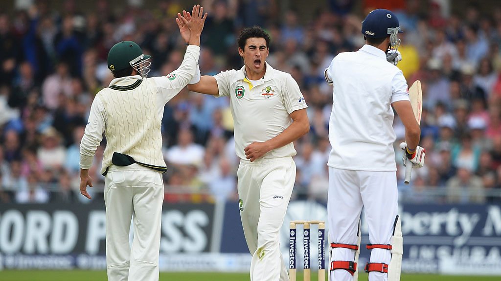 England's Steven Finn is out first ball edging a catch to the wicketkeeper.