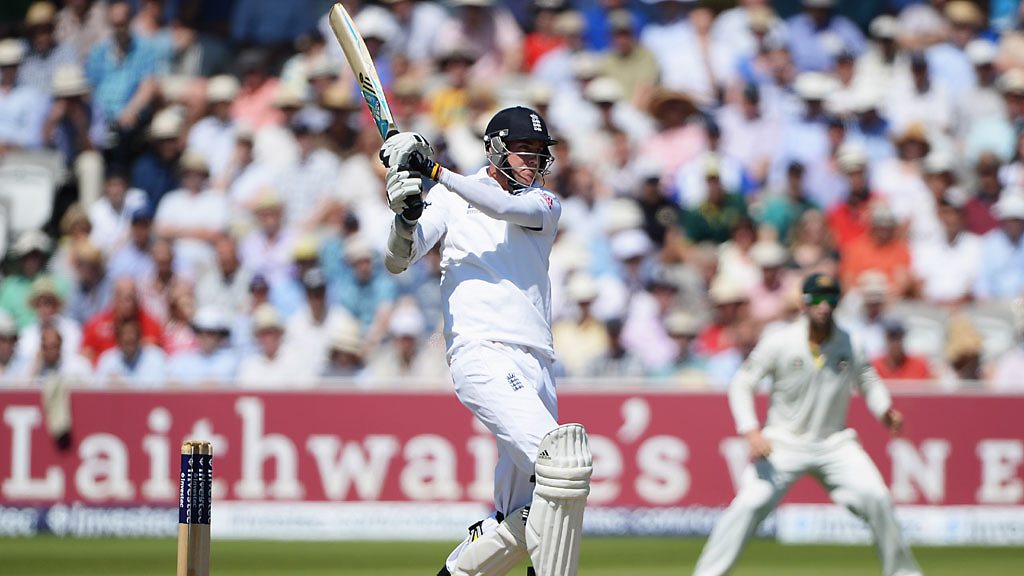 England's first innings ends with Stuart Broad out for 33.