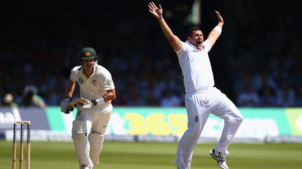 Australian opener Shane Watson falls lbw for 30 to Tim Bresnan.