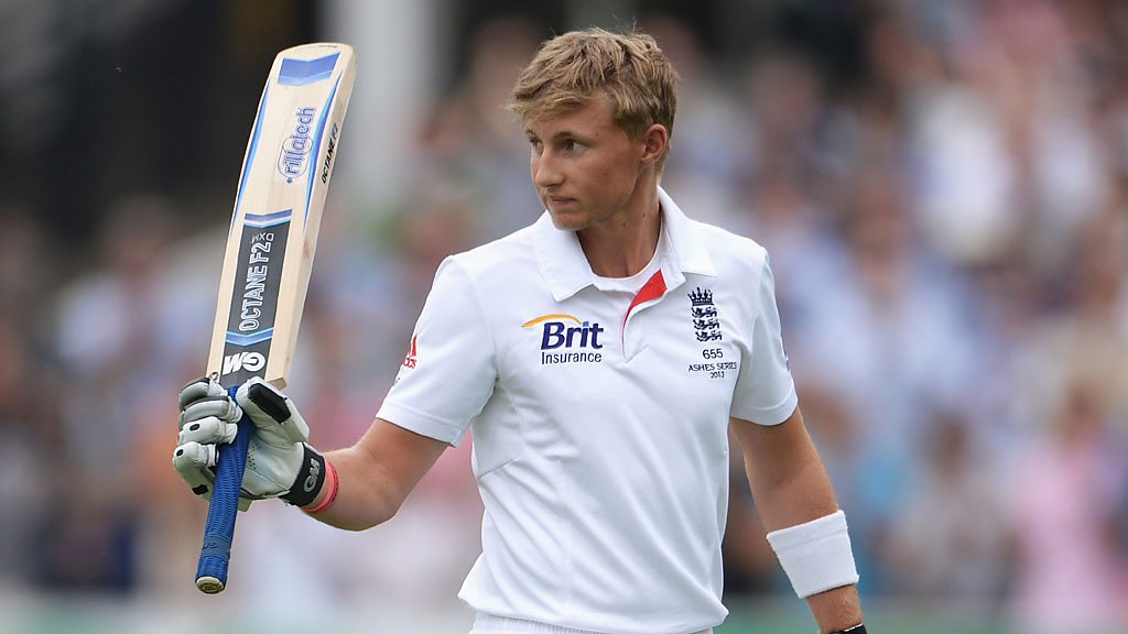 Joe Root's innings comes to an end for 180 and England declare on 349-7.