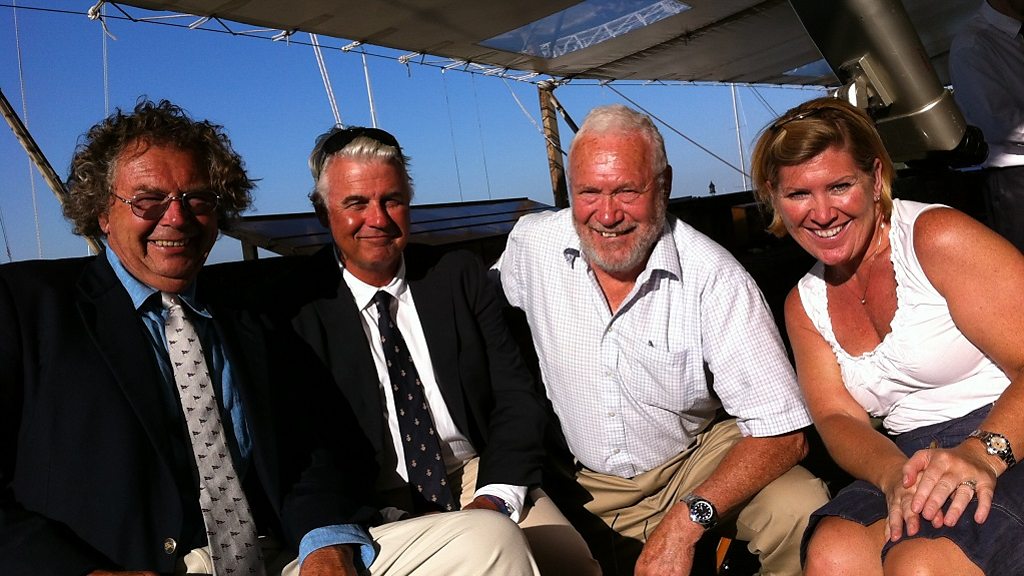 Sir Robin Knox-Johnston chats with Edward Leask and Brad Butterworth.
