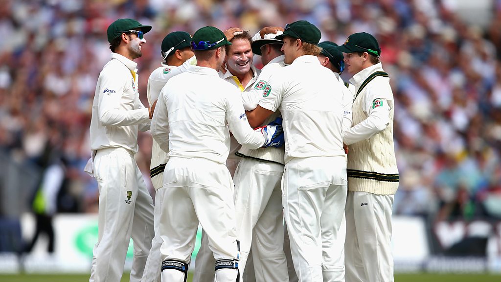 England's Jonathan Trott is caught off the bowling of Ryan Harris for 5 on the third day of the third Ashes Test.