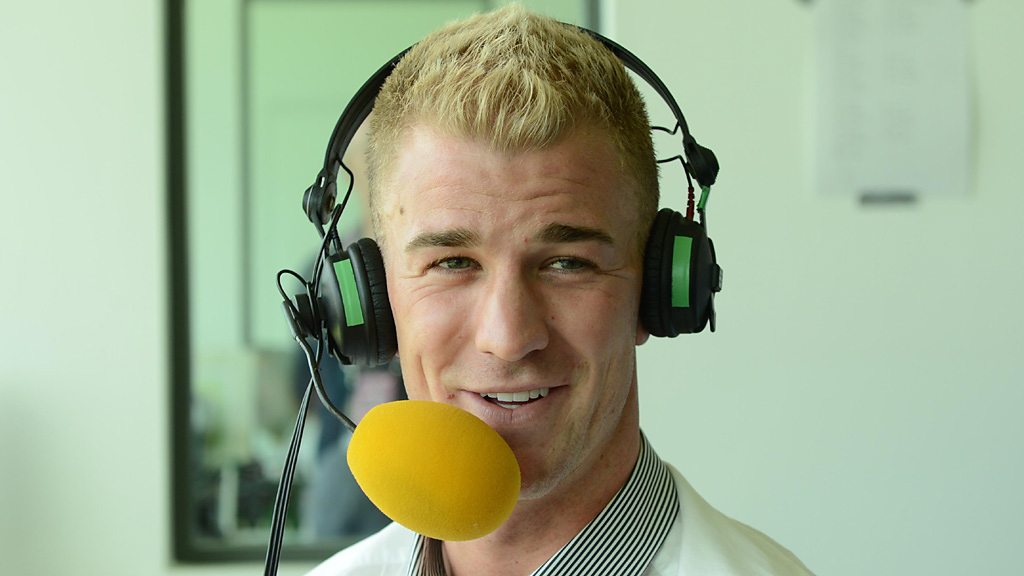 England & Manchester City's goalkeeper and keen cricket fan Joe Hart joins Jonathan Agnew at tea.
