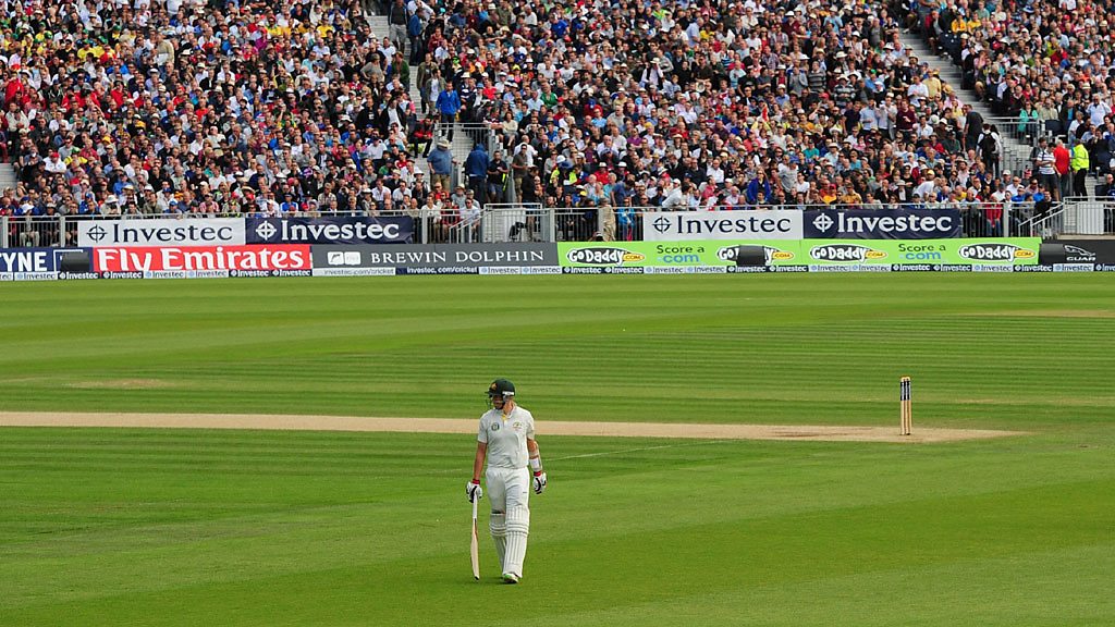 Australia's Peter Siddle is caught off the bowling of Jimmy Anderson.