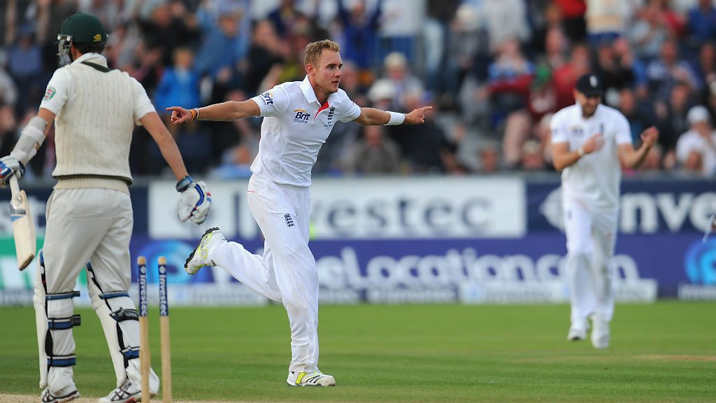 Australia's Nathan Lyon out for 8 to the bowling of Stuart Broad.